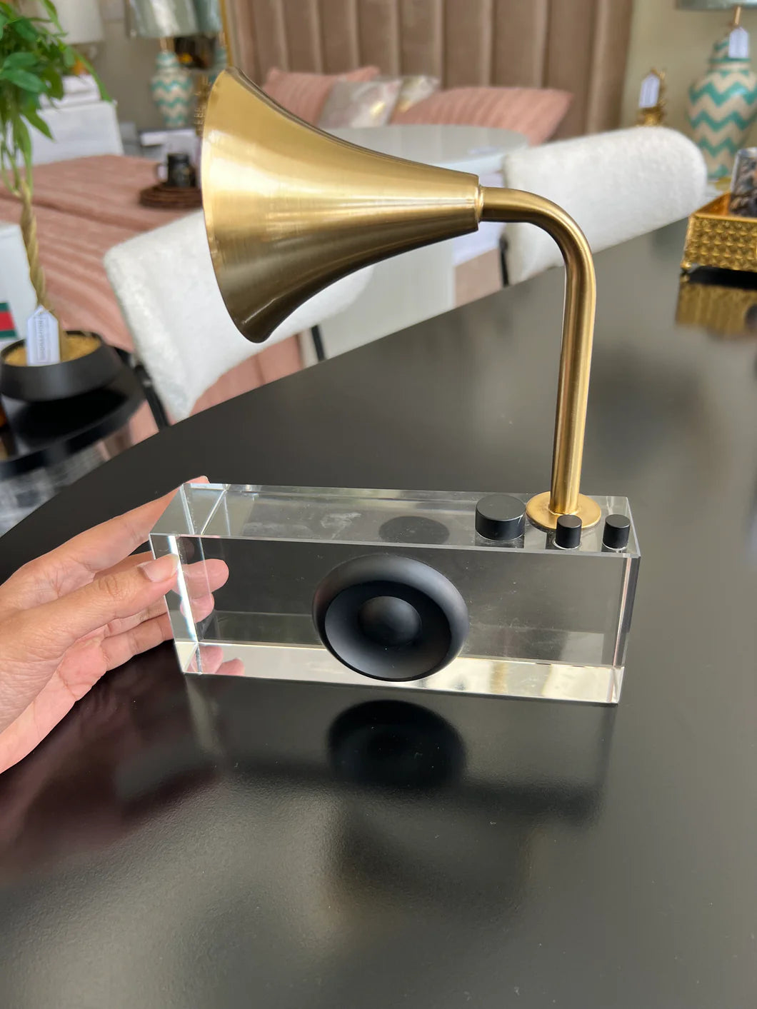 Gramophone Crystal – Elegant Decorative Crystal Music Figurine | Meer Decor World